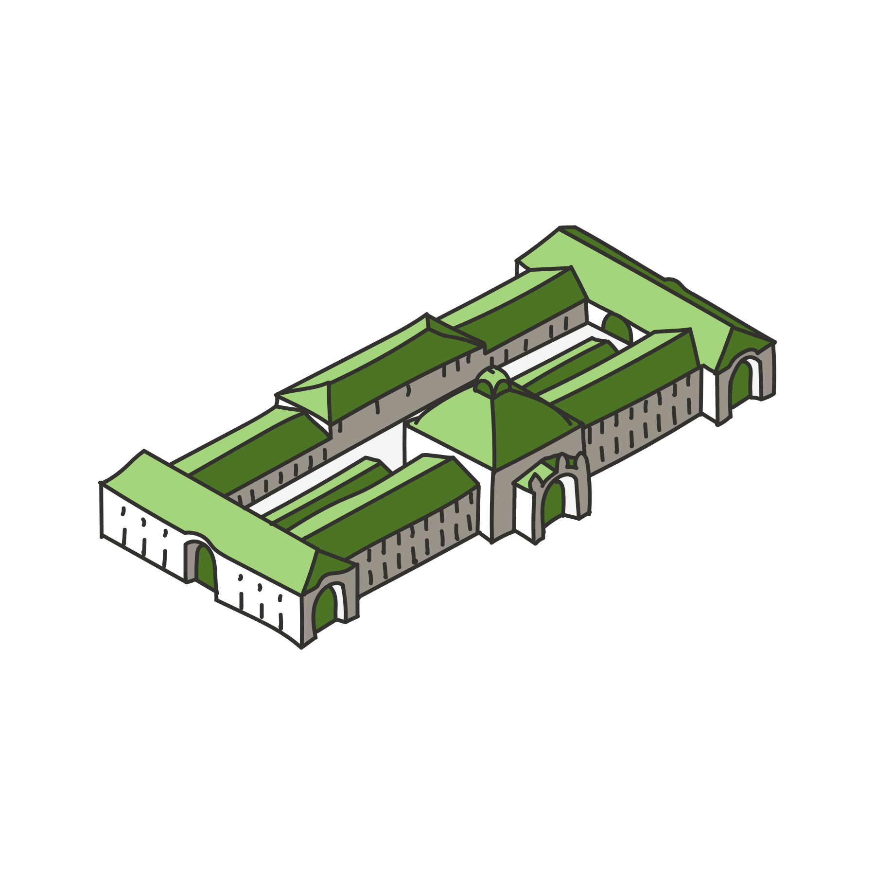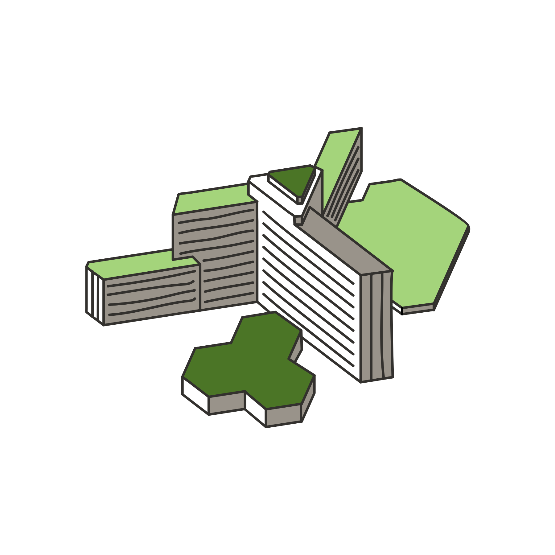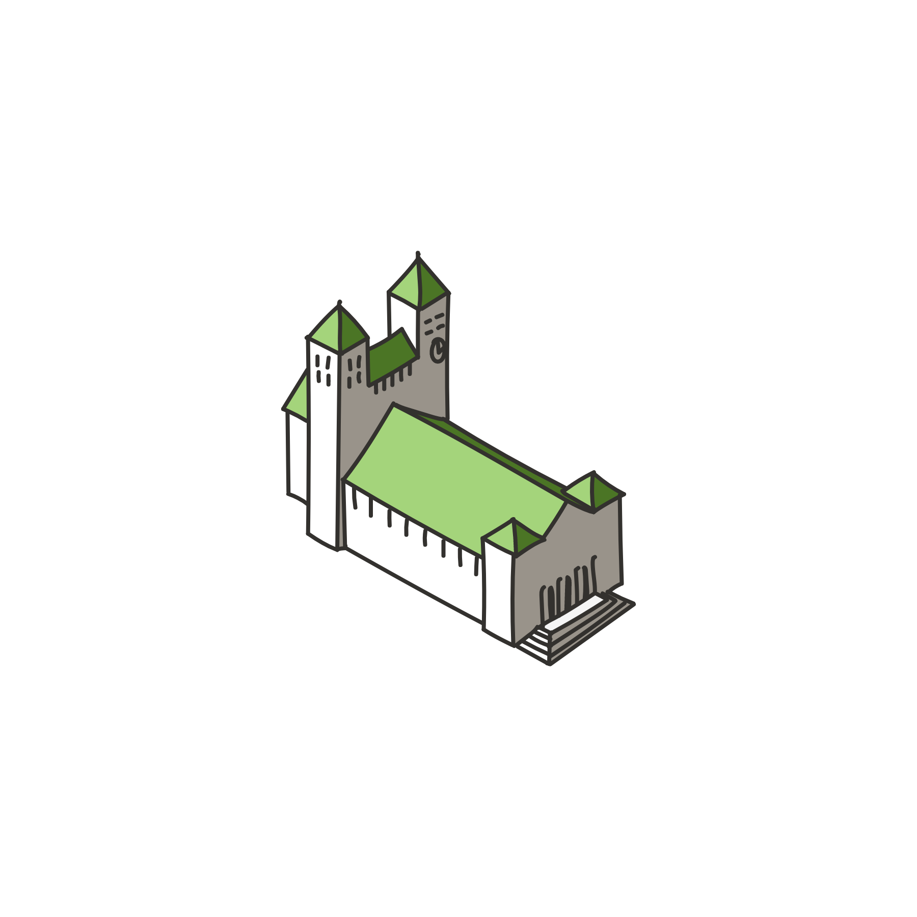 Markante Gebäude des Stadtteils in isometrischer Darstellung verleihen dem Info-Terminal ein unverwechselbares Erscheinungsbild – und erleichtern die Orientierung im Stadtplan.