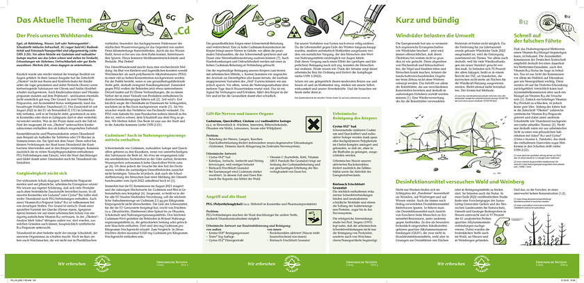 Brilliante Farbergebnisse erreichen wir durch Druck mit Schwarz und Sonderfarbe: Im Frühjahr grün, Sommer gelb, Herbst orange und im Winter blau. Druck und Papier sind umweltverträglich und klimaneutral zertifiziert.