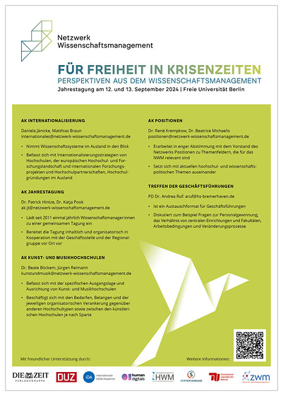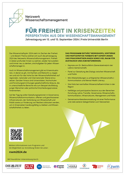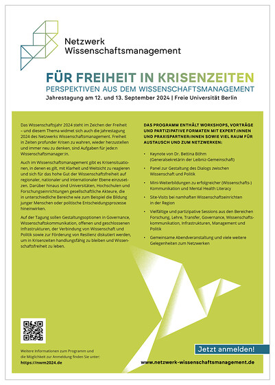 Mit seiner Jahrestagung richtet sich das Netzwerk Wissenschaftsmanagement an Akteure aus Hochschulen, Forschungseinrichtungen, Ministerien und Förderinstitutionen. In Workshops und Vorträgen werden Austausch gefördert und neue Maßnahmen und Kooperationen angestoßen.
