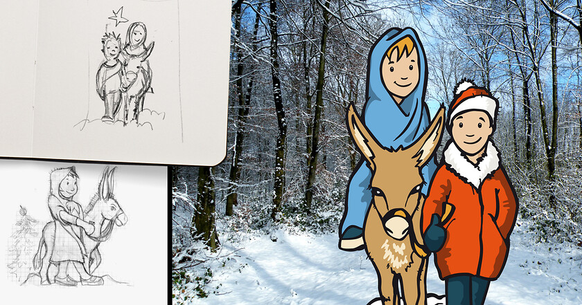 Laura und Baldi reisen auf einer Postkartenserie in Nürnbergs Vergangenheit