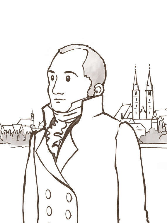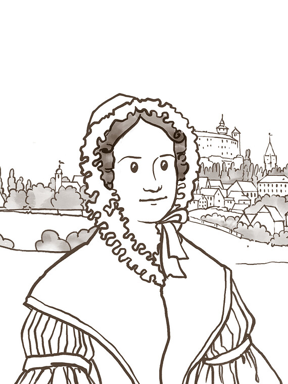 Stil und Farbigkeit nehmen Anleihen an der Zeichnung der Zeit zwischen Romantik und Biedermeier.