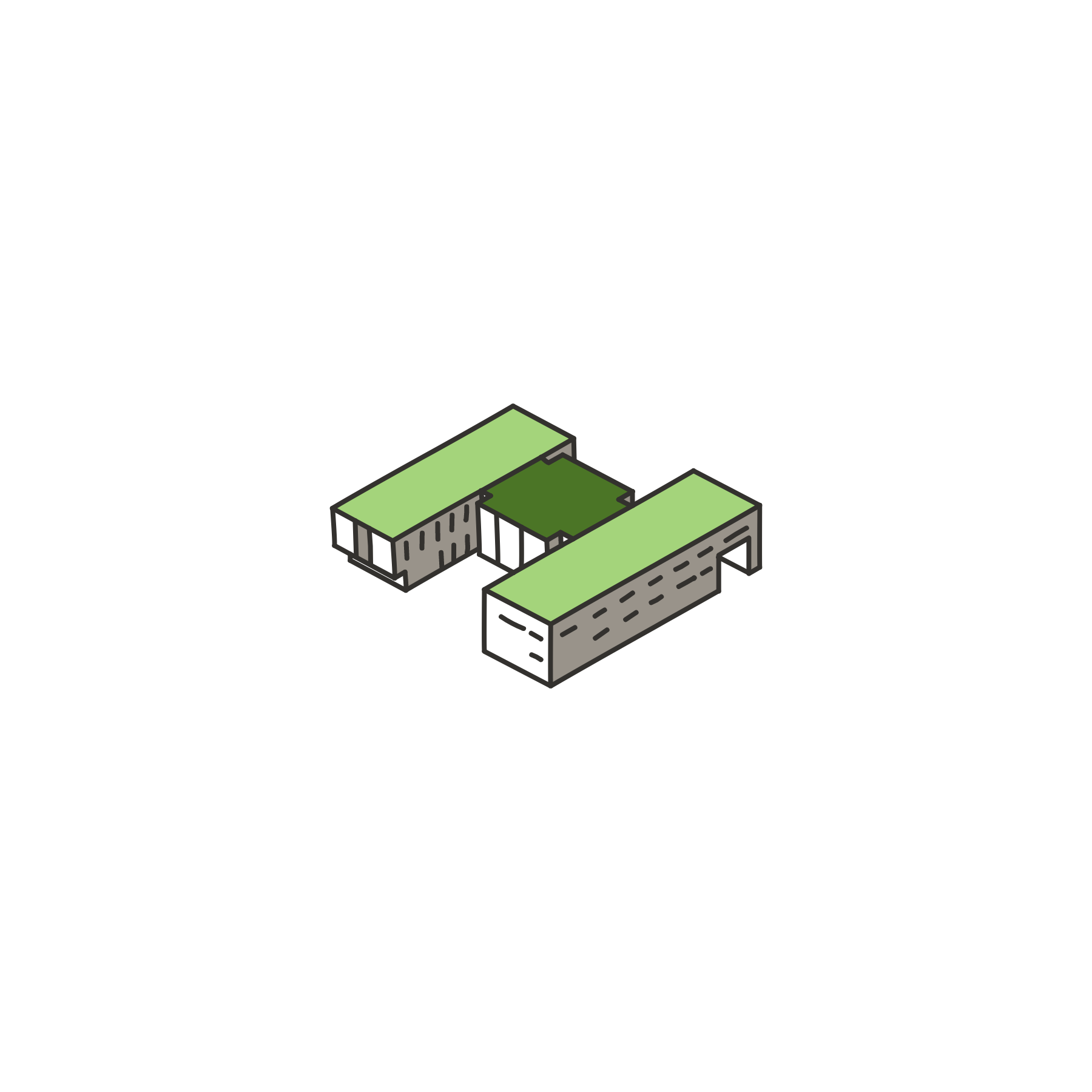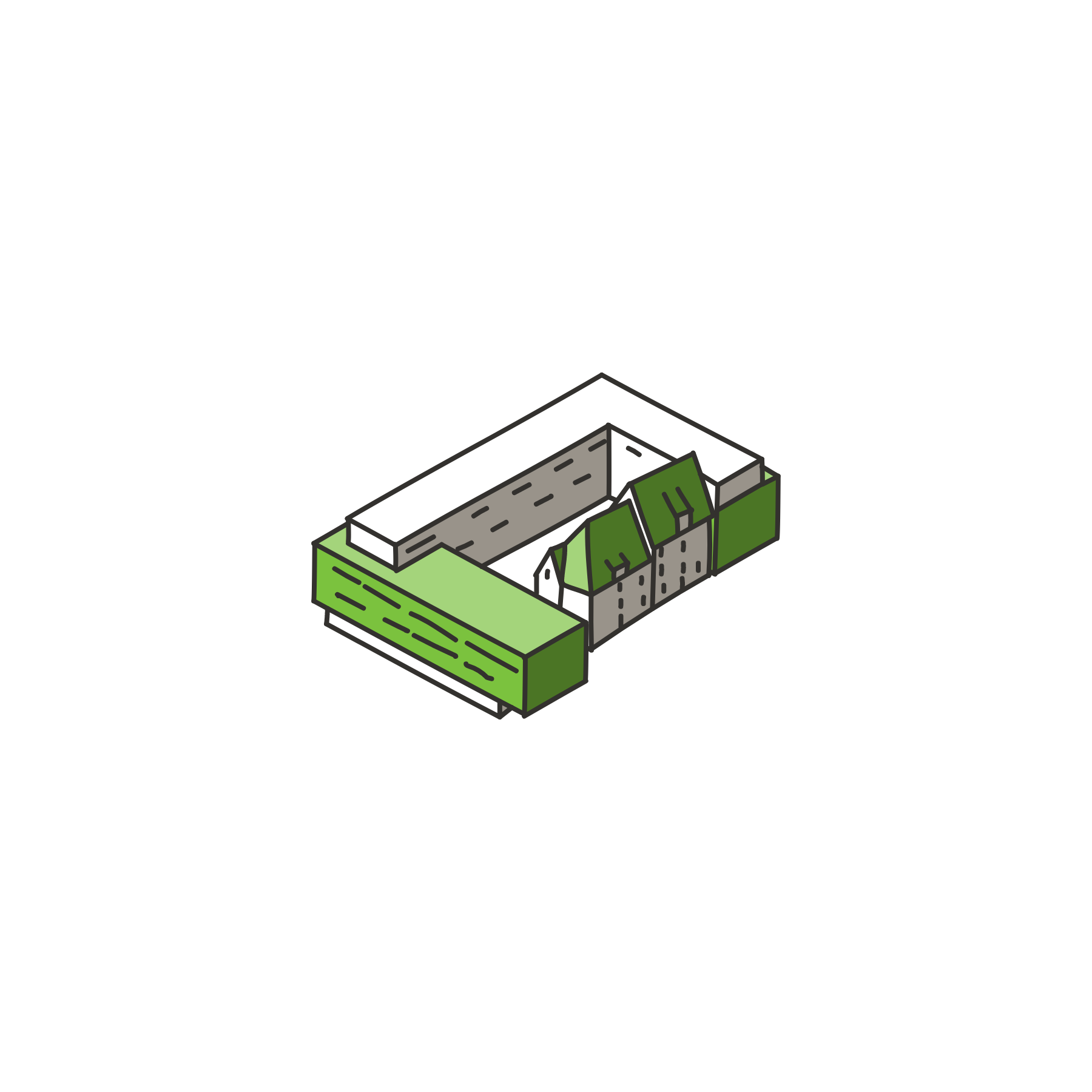 Markante Gebäude des Stadtteils in isometrischer Darstellung verleihen dem Info-Terminal ein unverwechselbares Erscheinungsbild – und erleichtern die Orientierung im Stadtplan.