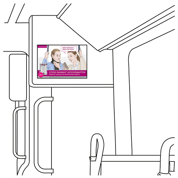 Update: Plakate, Monitorwerbung und Seitenscheibenaufkleber – Innenwerbung Stadtbahn »moBiel«, Bielefeld, 2024.