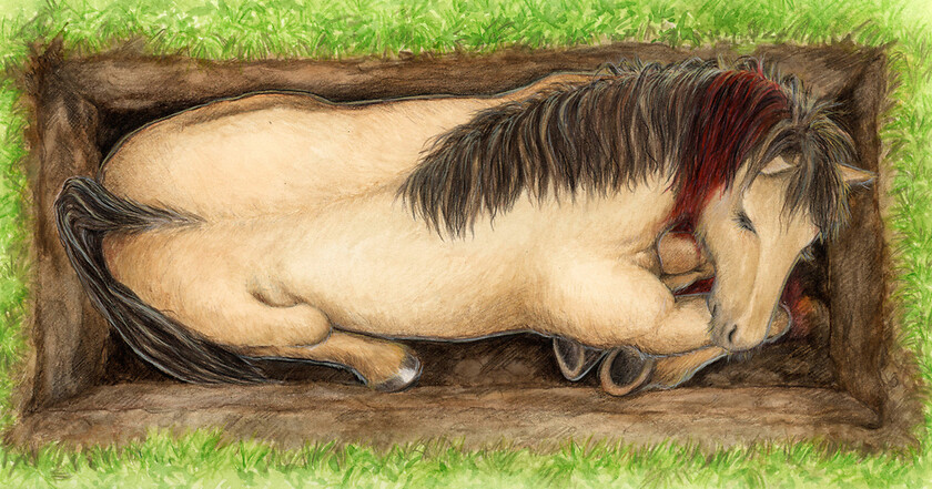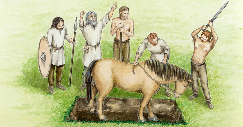 Ein frühmittelalterliches Pferdegrab ist Teil der ständigen Ausstellung des Westfälischen Pferdemuseums. Der Ablauf der rituellen Pferdebestattung wird über Projektionen direkt auf das Exponat erläutert.